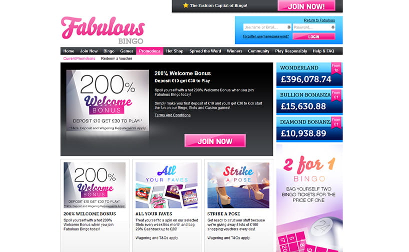 ‘Daily Pleasures’ gives you a chance to win cash or free spins on the Pleasure slot game. You must have credited your account to be eligible for this particular freebie. Promotions on offer change on a regular basis so keep your eyes wide open and don’t miss out! Currently, there is 20% cashback up to £20 on top slots. Just play the slots listed to qualify for yours. There are £20,000 in guaranteed prizes every day at Fabulous Bingo, in their super links games. In the 90 ball rooms, you can get two tickets for the price of one. 4 lots of £100 shopping vouchers are given away every day in the “Strike a Pose” campaign – simply spend £10 on bingo or £30 on instants to enter the draw!